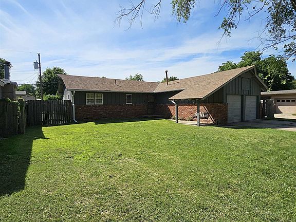 Great starter home or perfect empty nester. This home is 2 bedroom but could easily be 3 bedroom. The wall between the 3rd bedroom and the living room was removed. The closet and doorway are still there and replacing the wall is all it takes to make this a 3 bedroom once again. Currently the living room is 30 ft in length. So many possibilities - large living room, dining room, office or 3rd bedroom! Home also features large 2 car garage with openers, covered patio in the fenced in backyard and a nice, large shed for all of your storage needs. Bedrooms and halls have nice original hardwood flooring and living room carpet was replaced last year. All of this in a nice, established neighborhood in Derby.