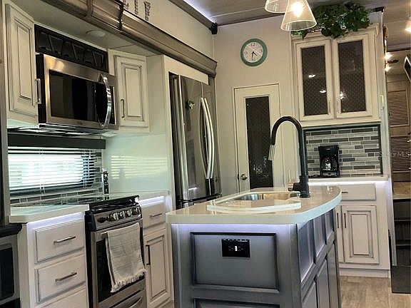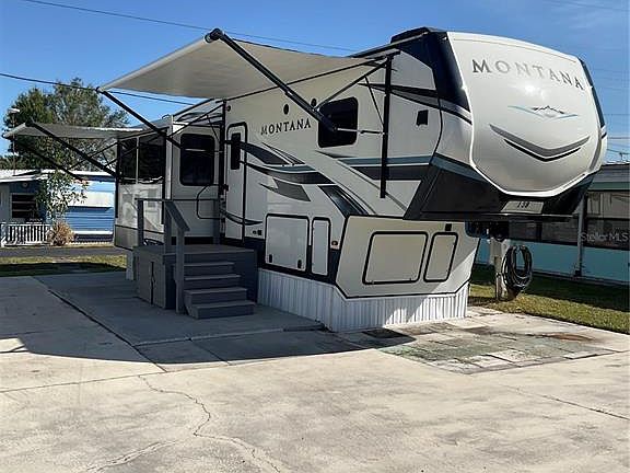 Lake Okeechobee access -Looking for the perfect winter retreat- check out this high-end 2022 35' Montana Fifth wheel, with three slides, on Deeded lot in Fish Eating Bay Condos- Features include ducted roof air, solid wood cabinets, Full-size stainless-steel appliances, cultured marble countertops, beautiful laminate flooring, oversized shower, ceramic toilet, central vacuum, surround sound, full size stackable washer & dryer, tons of inside and outside storage, and a 40' driveway giving you plenty of parking for your boat! Fish eating bay condos is delightful waterfront community, with low HOA dues, no age or rental restrictions, clubhouse, heated swimming pool, boat ramp, fish cleaning building, bathhouse, & laundry mat, located just minutes from Lake Okeechobee, and the new Hard rock casino. all measurement approx. call today!