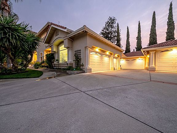 Elegant Mediterranean home in gated community on premium 1/3 acre lot - Perfect for those who love to entertain and have outdoor hobbies. Upstairs are two spacious suites, complete with fireplaces & contemporary baths. The master has a dream walk-in closet. Downstairs are a home office/library and workout gym that could be easily converted to bedrooms. Spacious open kitchen with Corian counters, gas stove & double island (one w/ Jenn-Aire griddle) overlooking the open great room. Wet bar with wine fridge and beer tap. Built-in kitchen nook overlooks the garden. Walk-in laundry pantry room with wrapping station. Energy efficient solar. The back yard is an outdoor patio oasis that has built-in seating, gazebo & barbecue area overlooking the waterfall rock pool. There is a 6-car garage + workshop, plus large side yard access for RV parking. Solar panels with 13+ years of prepaid electricity! European shutters and more. Striking curb appeal & fantastic architectural design. A must see!