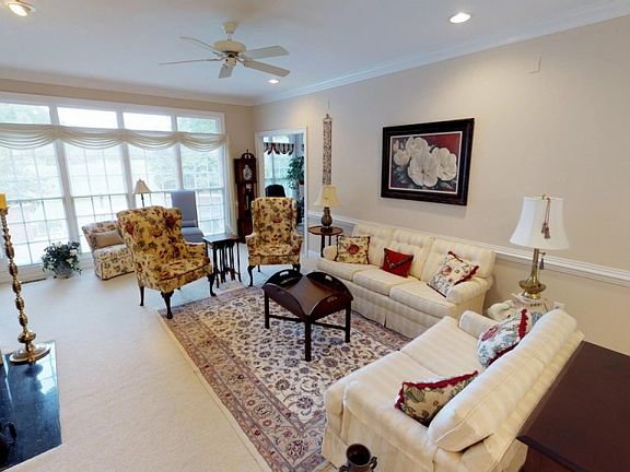 This striking home on the 14th green of Greenbrier's award winning Emerald Golf Club will impress you the moment upon entering its stunning interior. Nestled on a professionally landscaped and beautifully treed lot this executive home is set back far off the road. The large tree lined backyard features a two tier brick patio, incredible privacy, a sprawling lawn, and a gorgeous view of the golf course. Beautiful hardwood floors! Magnificent kitchen with Corian counters, custom cabinets, double oven, wine rack, breakfast bar, a spacious dinette, and more. 2 sunrooms, one off your large master suite. Formal dining room with high ceiling, elegant chandelier, and finely detailed mouldings. Adjoining living room features built in shelves and cabinets, fireplace, great natural light, and spectacular views to the backyard. Bonus room above the garage with full bath can be used as a 4th bedroom.