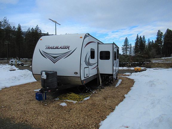 Great home or recreational site level with excellent access and plenty of sunshine for your gardening needs! Ride your bike or walk to park lands and a boat launch by Lake Roosevelt. 2014 27' Trailblazer by Dutchman Diamond Addition Travel Trailer included. City water just needs to be turned on and power is already installed. Septic perk test is done and approved. Bring your home plans. Plenty of room for a a large shop to be put up for all your toys.
