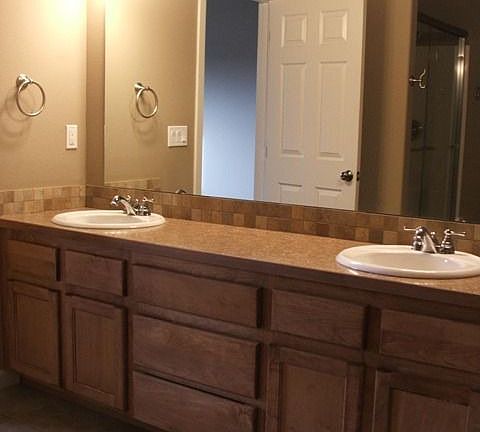 • Master Downstairs, Double Vanity, Walk-In Closet(s), Soaking Tub, Laminate Counters, Open Floorplan
