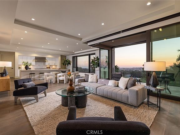 A rare opportunity for a top floor, penthouse unit at the prestigious Meridian, this immaculate contemporary single-story residence offers breathtaking views of the Pacific Ocean and the Newport Beach Country Club golf course. Ideally situated just moments from Fashion Island and Corona del Mar, this home spans approximately 2,700 square feet of luxurious living space. It includes two opulent bedrooms, an office/flex room, and three full baths. The chef's kitchen is equipped with top-tier Wolf and Sub-Zero appliances, a walk-in pantry, wine refrigerator, and a reverse osmosis water system. Throughout the home, you'll find White Oak floors, a spacious covered terrace, Lutron lighting, Fleetwood sliding glass doors, motorized shades, Surround Sound, a storage unit, and two side-by-side subterranean parking spaces with direct elevator access. The Meridian epitomizes coastal luxury living with 5-star amenities, including 24-hour concierge service, a state-of-the-art fitness center and yoga studio, a club room with a gourmet kitchen, a resort-style pool and spa, and a beautifully landscaped BBQ area. Enjoy unmatched convenience, with the finest restaurants, shopping, Pendry Hotel, Balboa Island, and pristine beaches all within easy reach.