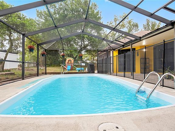 The Home you have been waiting for! Fabulous 3-Bed, 2-Bath Home with 2-Car Garage and screen-enclosed, in-ground pool. Double-door entry. Vaulted and beamed ceiling grace the spacious living room. Ample-sized kitchen showcases tons of cabinet and counter space, breakfast bar and lovely breakfast nook with view of the lanai, pool and fenced backyard. Convenient pass-thru from kitchen to lanai. Master Bedroom Suite with dual sinks and private access to 2nd screened porch. Loads of Bonus Features including interior laundry with laundry tub & cabinetry, exterior motion sensor lighting, irrigation system, walk-in closets in all bedrooms, pool child safety fence, laminate flooring throughout, pocket sliders to pool area, garage door screens all one an over sized corner lot in great neighborhood.