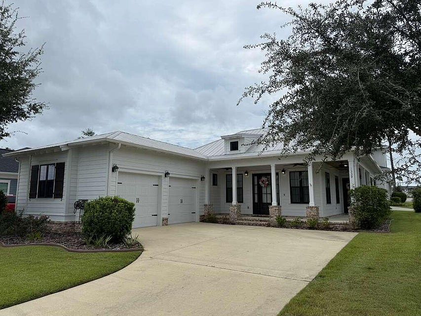 Full of charm and character, this Craftsman-style home is located in Niceville's premier community, Deer Moss Creek. This one-story residence features three bedrooms, two full baths, and a desirable open-concept floor plan designed for modern living. A welcoming wraparound front porch greets you and your guests before entering the bright and airy living room and kitchen, highlighted by 10-foot ceilings, tall dormer windows, and beautiful wood-look tile flooring throughout. The kitchen is a true showpiece, offering white quartz countertops, white shaker-style soft-close cabinetry, stainless steel appliances, a gas range, a farmhouse sink, open built-in shelving, and a spacious walk-in pantry, perfect for keeping everything organized. Just off the kitchen, a convenient laundry room provides additional storage and functionality.