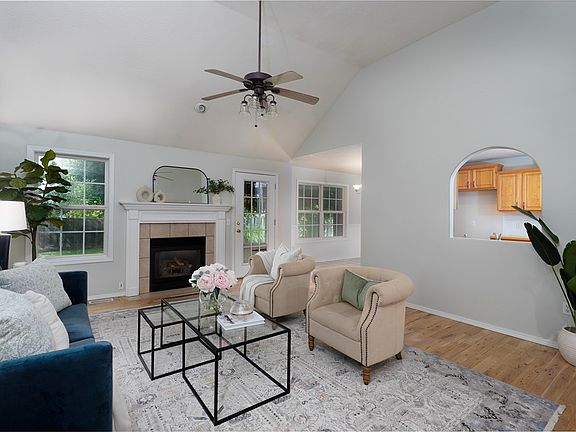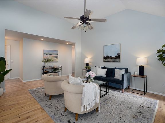 Totally updated, turn-key and ready! Beautiful new hardwood floors throughout! Spacious layout with split bedrooms and vaulted ceilings! Lots of natural light in the beautiful living room with high ceiling and a gas fireplace. This open layout allows some separation from the kitchen and living room but has a reach through window into the living, perfect for entertaining! Well maintained and immaculate with a NEW roof, NEW HVAC, NEW water heater, NEW paint, NEW solid hardwood floors in living room and all bedrooms making this home better than new! The backyard is right out of a magazine with a beautiful pergola that is covered in beautiful Wisteria vines providing shade and natural beauty to the covered patio for you to enjoy the beautiful private yard with big mature shade trees! The fully fenced yard is complete with a storage shed and sprinkler system! This home is truly a rare find! Agent owned, buyer to verify schools and square footage.