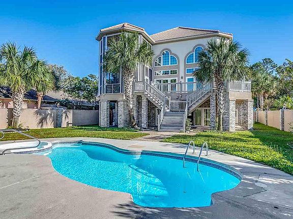 LOCATION, LOCATION, LOCATION. LUXURY LIVING ON THE INTRACOASTAL WATERWAY IN THIS 4 BEDROOM 5.5 BATH BRICK CUSTOM BUILT HOME WITH DEEP WATR DOCK, BOAT LIFT WITH COVER. ENTERTAIN AT YOUR OWN TIKI BAR BY THE POOL AND WATCH SUNSETS ON THE WATERWAY. TIKI BAR HAS A FULL KITCHEN WITH STOVE, REFRIGERATOR. THE INTERIOR IS 3 STORIES WITH AN ELEVATOR WITH FLOOR TO CEILING VIEWS. 2 SCREENED PORCHES AND A DECK OFF THE LIVING ROOM FOR AFTERNOON COCKTAILS. IT HAS A GOURMET KITCHEN WITH A WOLF STOVE AND SUB ZERO REFRIGERATOR, GRANITE COUNTERTOPS, CUSTOM CABINETS, 2 FULL SIZE PANTRIES. ENJOY YOUR DOUBLE SIDED FIREPLACE BETWEEN YOUR HUGH FAMILY ROOM AND KITCHEN AND A FULL BAR OFF OF THE LIVING ROOM. TWO FLEX ROOMS TO USE FOR WHATEVER YOU NEED. THE BOTTOM FLOOR IS A HUGH GAME ROOM THAT LEADS OUT TO THE POOL AREA WITH AN OUTDOOR SHOWER.