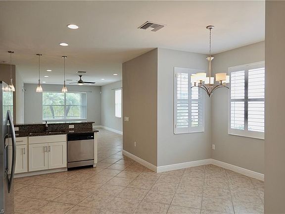 HURRY! THIS VILLA Style Home is the ONLY AVAILABLE Property FOR SALE in Manchester Square! This Single Family Villa Home offers an open floor plan with 3 full bedrooms, 2 bathrooms & an upgraded extra large 2 car garage, extended Lanai and backyard space and is MOVE IN READY! This home was just FRESHLY PAINTED throughout and is in Impeccable condition! Upgrades include tall wood kitchen cabinets, granite countertops, stainless steel appliances, porcelain tile on the diagonal, plantation shutters, window coverings, lights & fans, security system, extended screened lanai, private back yard with fence & room for an outdoor grill. The windows in this Villa face south making this home bright and cheerful. Manchester Square is conveniently located in desirable North Naples, close to world class beaches, A-rated schools, library, shops, restaurants, Mercato and Ritz Carlton Resort Hotels. Amenities include a resort style pool with a section designed for laps, fitness center, beautifully appointed club house with catering kitchen, outdoor play area and recreational/basketball court. HOA Fees include landscaping. This low maintenance home makes it easy to enjoy the Florida lifestyle.