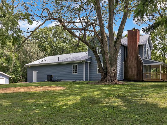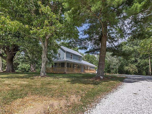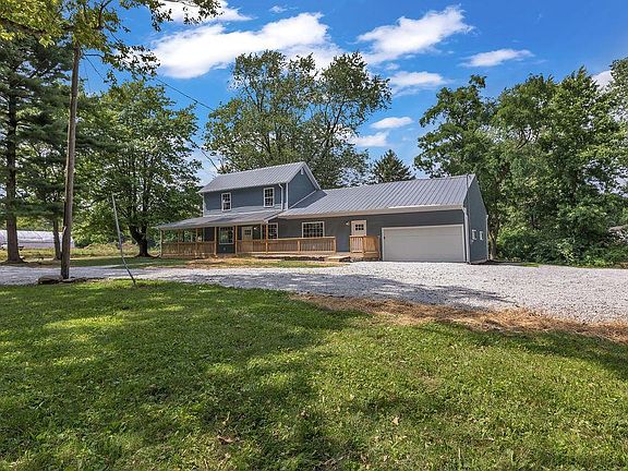 Must see home on over 5 acres. 4 bedrooms with a possible 5th bedroom in bonus room upstairs. A 1yr remodel of this home was just completed. It was completely gutted and everything is new. A gorgeous open floor plan was created with a downstairs master suite. A massive custom kitchen with a 9x4 granite island and all new appliances. Large mud room just inside the over-sized two car garage with first floor laundry and half bath. New granite and tile in all bathrooms and around wood burning fireplace. 80'x8 large wrap around covered porch. 1 car exterior garage and possible shed/chicken coup. Mowed walking trails through the mostly wooded property with creek. Upstairs bonus room adds 390 additional finished living space for a total of 2364 sq ft. Great location close to Rte 70