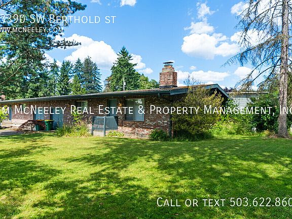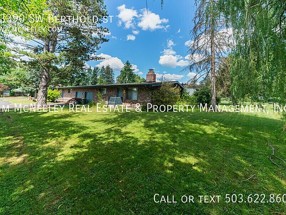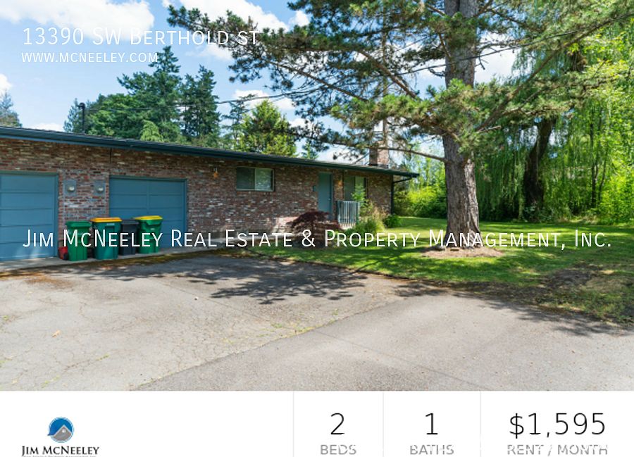 -Pay Screening Fee: $65.-If you have a pet, assistance animal, or to clarify that you do not have animals: https jimmcneeleyrealestatepm. See pet policy on property listing) County: Washington Lease Terms: One year Date Available for Viewing (subject to change):Now Heat: Electric Baseboard Utilities included in rent: No utilities included. Year Built: 1958 Levels: One level Floor plan - Kitchen, living room, Bathroom in hallway, Dining Room, Attached garage. Amenities: Refinished hardwood floors, built in cabinets, remodeled kitchen and bathroom, attached garage. professional landscaping, washer/dryer Appliances: Stove, dishwasher, garbage disposal, fridge, washer/dryer Garage: Single No Fenced Backyard Vehicle Restrictions: RV or boat parking with management permission. Schools:Chehalem, Cedar Park, Beaverton PET POLICY: Up to two small pets (under 20 lbs). $500 additional deposit per pet. Directions: Erickson, W on Berthold between Farmington and Allen. NOTE: Fireplace does not work. Proof of Renter's Insurance will be required before move- in: JMRE must be listed as an Interested Party and a minimum personal liability limit of $100,000.00 **Smoking is not allowed in any of our rental properties. Some properties may not allow smoking on the entire premises. This includes the garage + within 10 feet of the property ** INFORMATION NOT GUARANTEED AND SHOULD BE VERIFIED. SQUARE FOOTAGE IS APPROXIMATE & MAY INCLUDE BOTH FINISHED & UNFINISHED AREAS. SCHOOL AVAILABILITY SUBJECT TO CHANGE.