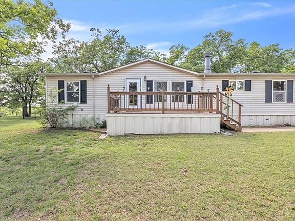 Step inside to find gorgeous wood-look laminate flooring throughout, granite countertops, and a cozy wood-burning fireplace perfect for those cool Oklahoma nights. The open living, dining, and kitchen areas flow seamlessly onto a covered deck with a ceiling fan—ideal for summer evenings, morning coffee, or simply soaking in the peaceful surroundings.