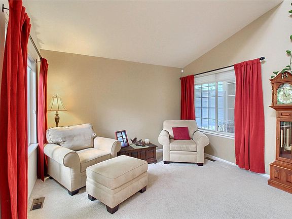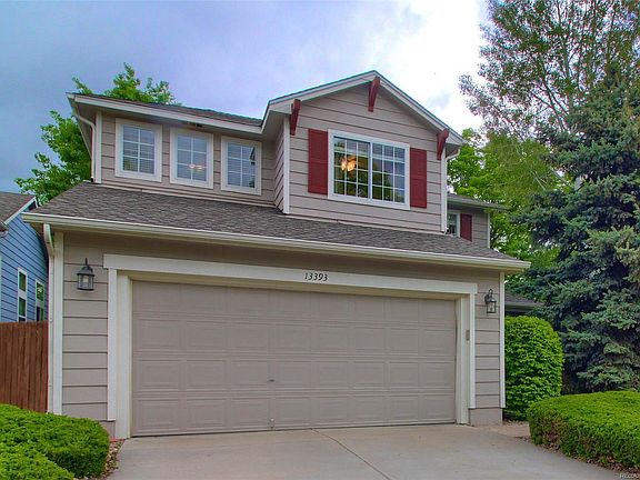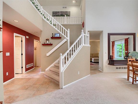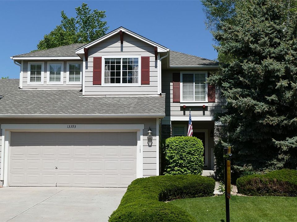 You'll love this stunning two story home in the popular Village at Hunters Glen neighborhood! You will be welcomed by a soaring 17 foot vaulted ceiling and open area which includes the beautiful living room and dining areas. The kitchen features black granite counter tops, kitchen island, plenty of cabinetry, gas stove and a breakfast nook. Relax in the adjacent family room and curl up by the gas fireplace on those chilly evenings. Also on the main floor is the laundry/mud room and 1/2 bath. Retreat upstairs to the large master bedroom with en-suite bathroom and private entrance leading to the large raised deck. Step outside to enjoy stunning views of the Rocky Mountains! Two bedrooms, full bath, and great loft area complete the upstairs. In the back yard is the covered patio, perfect for entertaining family and friends! The basement is unfinished and awaiting your special creation. Easy access to I-25, Orchards, the outlet mall and a multitude of shopping and dining! You'll love it!!