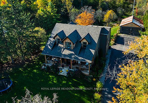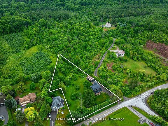 Custom Built 2019 Modern Farmhouse Retreat Surrounded by Nature w approx 3300sq ft finished sq ft, 5 bdrms, 2 kitchensNestled between the Silver Creek and Terra Cotta Conservation Areas, this custom-built modern farmhouse offers the perfect country retreat just 10 minutes from Georgetown, Erin, and Brampton, with easy access to highways.Situated on just under 2 exquisite acres abutting conservation areas, minutes to the Credit River and the GlenWilliams Arts District shops and restaurantsDesigned with a seamless blend of contemporary style and country charm, made for family living & entertaining with wide open spaces and a welcoming layout.The chefs kitchen is a showstopper, featuring a full-size side-by-sidefridge and freezer, a dual fuel five-burner gas stove, and abundant custom cabinetry. Originally designed as afour-bedroom home, the current owners have converted the 4th bdrm into an expansive dressing room connected tothe primary suite complete with balconey The conversion is easily reversible as the original framing remains. Theprimary ensuite features a standalone, oversized soaker tub perfectly positioned beneath windows that framebreathtaking views of the Niagara Escarpment.The two additional bedrooms are generously sized with large closetsand picturesque views from every window. The finished lower level offers a private one-bedroom suite with aseparate side entranceideal for guests, multi-generation or teen hangouts. A separate home gym adds functionalityto the space.Enjoy landscaped grounds, gated long private driveway , a covered front porch, and a serene covered back porchoverlooking mature trees and open skies. The oversized two-car garage includes convenient rear yard access andEVCWell is exceptional with 5 gallon/minute flow rate ( attachment) Home drawings pdf avail. Generlink transfer switchfor back up power.Septic, furnace, windows, shingles, electrical (200amp), plumbing 2019. AC 2025.Garage electric upgrade 2024