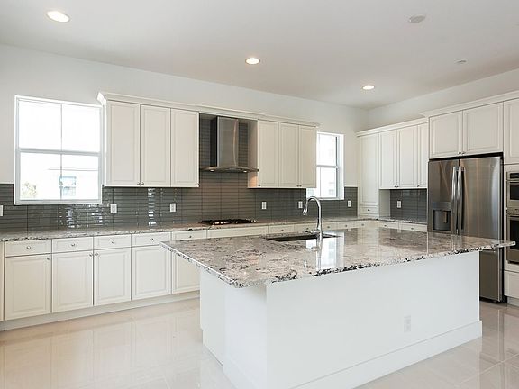 Lake View End Unit, Island Elevation, 3 Bed, Den, 3 Full and 1 Half Bath, Dry Bar, includes optional Dining Bar, Kitchen with Gas Cooktop and Stainless Steel appliances, Master Bath with frameless shower, Tile Floors throughout Main Living Area, Covered Balcony and Patio, attached 2-Car Garage.