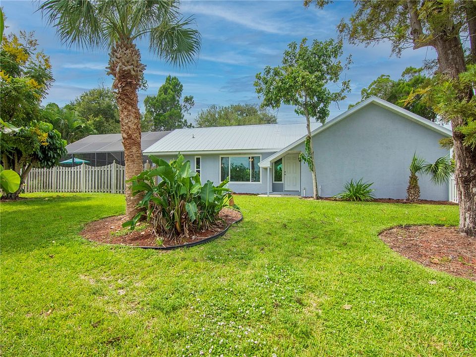 Steps to the Sebastian Riverfront district where the breezes are intoxicating, the restaurants are within walking distance, and the sunrises are magnificent, you might just be the next lucky owner of this fantastic home, recently renovated, sitting on a gorgeous .53 acre private fenced in tropical paradise, with a magnificent screened pool, and all your Florida dreams are about to come true. This rock solid concrete block home has all new impact glass, a 2020 metal roof, crown molding, big picture windows, new vinyl plank flooring, updated kitchen/bathrooms, and what could be an inlaw suite.