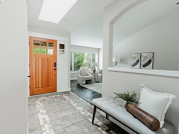 Tucked into a coveted residential Hiteon neighborhood enclave, this absolutely lovely single level home offers comfort, functionality, and timeless style. From the moment you enter, you're greeted by a bright and inviting foyer, naturally lit by a skylight overhead. Soaring vaulted ceilings in the living and dining areas create an open, airy ambiance, ideal for entertaining or simply unwinding. The kitchen is a true centerpiece, featuring stainless steel appliances, ample cabinetry, and corner windows over the double sink, perfect for the home chef. Just off the kitchen, you have a dining nook with bay windows, flowing seamlessly into the cozy family room, centering around a brick, wood-burning fireplace. Through the sliding glass doors opening directly onto a spacious deck, you’ll find multiple areas for morning coffee, relaxing afternoons, and dining on summer nights. The outdoor space is a haven where you can enjoy the meticulously landscaped, fully fenced, low-maintenance backyard in your own personal sanctuary. The primary suite is a peaceful retreat, complete with french doors, a walk-in closet, double vanity, and a tiled walk-in shower. Two additional generously sized bedrooms and a second full bathroom offer plenty of space for guests, family, or a home office. Additional highlights include a dedicated laundry room and an attached two car garage. Notable updates: roof, double-pane vinyl windows, and wood floors 2018; high efficiency furnace and AC 2014; bathrooms 2020; water heater and driveway 2023. Conveniently located near Summerlake, Murrayhill, and Progress Ridge, this well-maintained home offers a perfect blend of practicality and charm, with access to excellent schools, parks, and all of the amenities Beaverton has to offer. Don’t miss your chance to make this home your own!