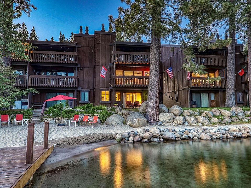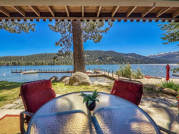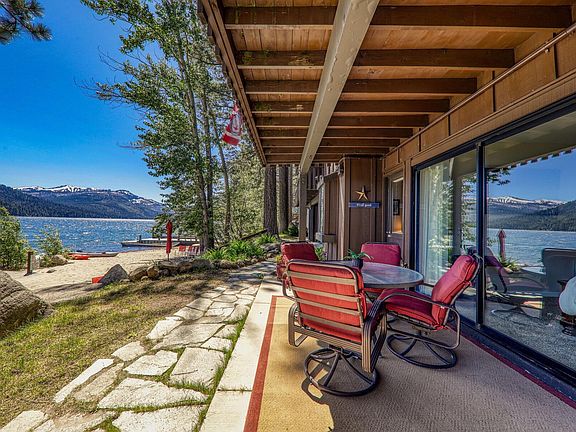 Waterfront living at it's best! This condominium has it all. Step out the door to the patio and then onto the beach with the lake just feet from your door! Panoramic views of Donner Lake from the State Park in the east to Rainbow Bridge toward Donner summit to the west. You can enjoy viewing the sunrise and the sunset from your own property! South facing for all day sun so you can comfortably relax on the patio, the lawn, the beach, or the dock. Take your pick of sun or shade, but either one is right at the waters edge and offers one hundred eighty degree views! The beautifully landscaped waterfront offers lush greenery and towering trees as well as mooring for your boat at the huge dock. This stunning condo is an end unit and is completely remodeled and ready to go. Gourmet kitchen with granite counters, tile, and stainless steel appliances. The unit could be sold as it is currently with beautiful furnishings and decorated with tasteful artwork which accents and highlights the gorgeous setting. Your master bedroom gives you panoramic lake views and opens with a sliding glass door out to the patio and the lake. The living room offers beautiful wood paneling, a gas fireplace, more lake views, and another slider to your own private deck. For ease of use and storage you can enjoy a one car attached garage. Smart home features give you many choices of lighting, effects, and mood. The location is unbeatable so come enjoy your own slice of heaven on over 250 feet of private frontage on the shores of Donner Lake!
