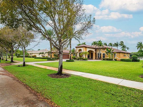 Beautiful and spacious Chadwick model in Country Glen. Situated on a builders acre this 6 bedroom, 4 bathroom, 2 1/2 bath + Office/den home is perfectly distributed to give everyone ample space and comfort with a triple split floor plan. Lots of natural light, fireplace with accent wall, tile floors in the living room, dining room, family room, kitchen and wood floors in the bedrooms. The master has his/hers closets, Jacuzzi, his/hers vanity, shower with two seperate shower heads and enclosed commode for privacy. Lush landscaping provides for privacy and the covered patio is a perfect space to relax by the pool with lots of shade. Impact windows in the front of the house and accordian shutters in the back. Zoned for A+ rated schools and it has 24 hour manned security guard gate.