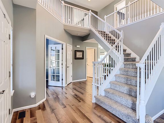 This stunning and updated home offers an amazing and functional floorplan and is ideally located on a corner homesite. This home will impress with its many improvements. The gourmet kitchen is complete with slab granite countertops, abundance of cabinet space and stainless steel appliances. The owner's suite boasts double french doors, vaulted ceilings, five piece bathroom and large walk-in closet. The basement is finished and features a rec room with gas fireplace, surround sound speakers plus an additional guest suite with a 3/4 bathroom. Other improvements include newer hickory floors on the main level, newer carpet on the upper level, updated light fixtures, newer interior and exterior paint, newer roof and so much more! As if this was not enough, the exterior has a covered front porch and a large usable backyard with a sizeable patio that is perfect for relaxing or entertaining. Adams 12-5 Star Schools! Pool community! Must see - this one will not disappoint.
