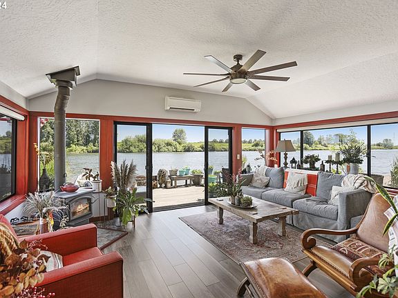 FLOAT IS RATED 4=QUALIFIES FOR A 30YR LOAN!! Welcome to the Sunburst House! This exceptionally beautiful floating home is in excellent condition, in a perfect location with stunning river, Sauvie Island & Mount Hood views. It is the result of a twelve-year complete remodeling and upgrading of everything from float to roof inside and out. It features high-end materials and finishes throughout, such as mahogany cabinets & trim and granite countertops. The impeccable workmanship and attention to detail must be seen to be fully appreciated. It is very well insulated and has a huge floored attic for extra storage. Located on the picturesque and quiet Multnomah Channel at Larsons Moorage, which is right at the hub of the three major rivers in the Portland area. Fuel dock at nearby Freds Marina & just 2 minutes to the Willamette or 7 minutes to the Columbia, or just fish right outside your door. Zipping about in the boat is easy thanks to the rolling davit system (dinghy and davit are included in the sale)! The shop area is covered and well lit for those who like to tinker. The pantry/laundry room is massive with pull outs shelving drawers. Go ahead, stock up at Costco. To top it all off the inviting sunroom makes a perfect home office or guest quarters. The great room is surrounded by beautiful Milgard architectural aluminum windows with a 10-foot slider which opens up to the generous cedar deck. It is a short commute to Portland or Scappoose for shopping and dining. Forest Park with its biking and hiking and Sauvie Island with its concerts, farm to table events, farmer's markets and sandy beaches are right in your backyard. The unobstructed view from the great room and the river deck is unsurpassed from Mount Hood to the Sauvie Island bridge and beyond. The Sunburst Home is a Stunner and won't last long. Features are too many to list. Ask your broker for the supplemental features sheet.