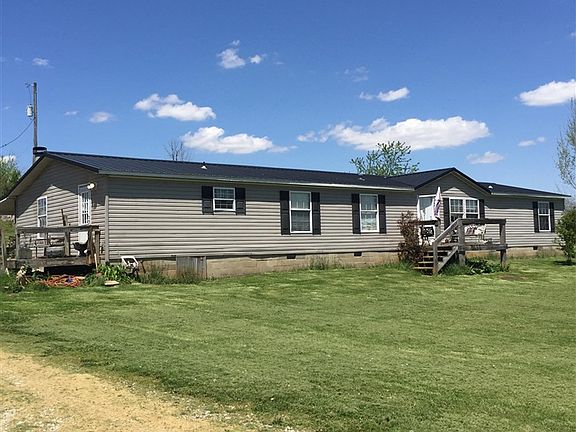 Home has over 2100 sq ft on 8.29 acres. 4 bedrooms with a large master suite. Living room has a flue for a wood burning stove. Out buildings consist of a 30x40 garage and a barn. Property is near the Nolin River and about 8 miles from Wax Marina.