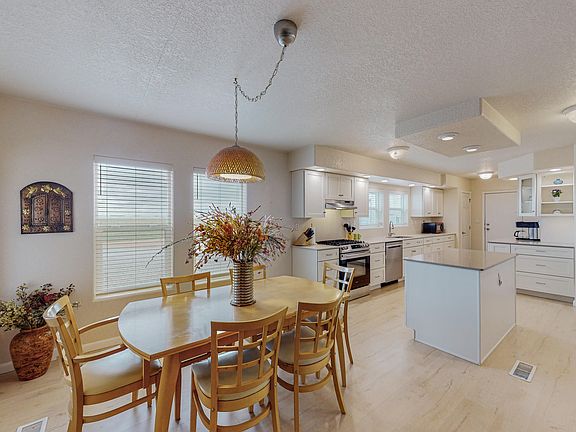 Ready to enjoy a slice of homemade Rhubarb pie? This 10 acre property has it all including Rhubarb plants ready to make those special pies & jelly! Country living with all of the charms including beautiful views, magnificent sunsets & Antelope playing in the backyard! This 1756 sq ft well cared for Schultz home includes recessed lights, ceiling fans throughout, refrigerated air & a 15 Kilo Watt Home Generator. Spacious 3 bedroom, 2 full bath home includes an enclosed front porch (not included in the sq ft) perfect for enjoying a cup of coffee while watching the sun peak above the horizon. Large windows offer natural light and views for miles. The bright, updated kitchen includes quartz counters, island, stainless steel appliances,