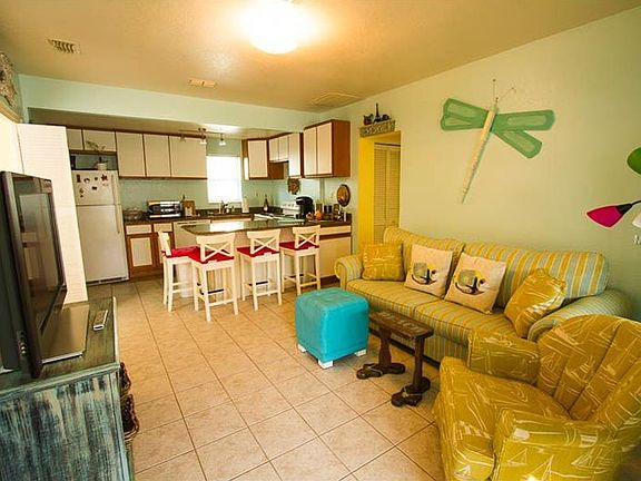 Live the dream owning this fully furnished island home located in beautiful Sunset Beach, Treasure Island where the beach & local restaurants are just a few steps from your front door. This home features 2 bedrooms & 1 bath, solid block construction, tile flooring throughout, updated kitchen & bathroom with granite countertops, dual master bedroom closets, roomy(8x10) bathroom, fresh interior paint, full sized washer & dryer, covered & screened front porch, private rear patio, detached utility shed, generous parking areas, mature landscaping & a low maintenance xeriscape yard. Move in ready for full-time resident or use as your vacation retreat & rent as well. Your tropical paradise awaits!