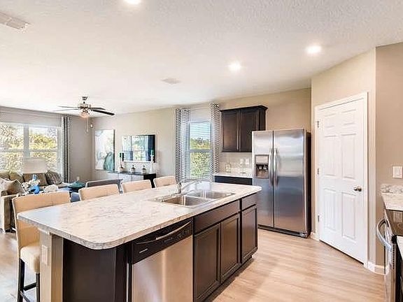 **NEW CONSTRUCTION** 4 BR, 2 bath, 2 car garage w/ 1908 sq. ft. of living area. Open floor plan with lg kitchen island. SS appliances, inc/ WD. Split plan. Large walk-in master closet and linen closet. White faux wood blinds windows. Optional covered lanai. 18" tile flooring in main LA. Smart Efficient Home. **Photos of furnished Cali model, NOT actual photos of the home for sale.**