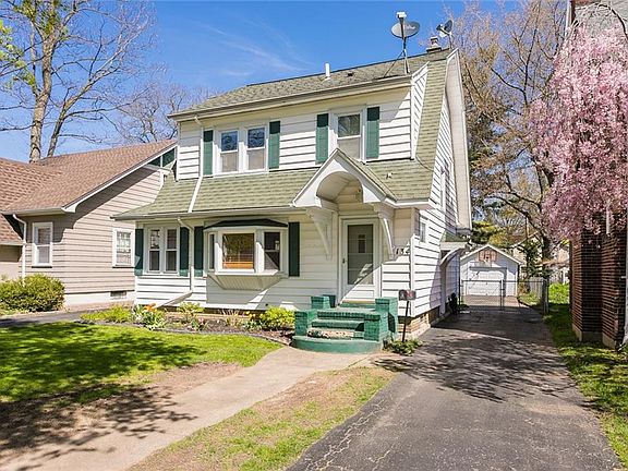Move in ready home in West Irondequoit close to shopping and expressway. Enjoy this quiet neighborhood setting in your fully fenced back yard! Inviting foyer with natural woodwork leads to large living room with southern exposure. Dining room with sliding glass door that leads to deck flows perfectly into kitchen with ample cabinet space and appliances included! Upstairs you will find 3 bedrooms and a remodeled bathroom. Full walk up attic great for storage! Partially finished basement for entertaining. Detached 1 car garage. Call today to make an appointment to see your new home! Any offers to be reviewed @ 9pm on Saturday 5/11!