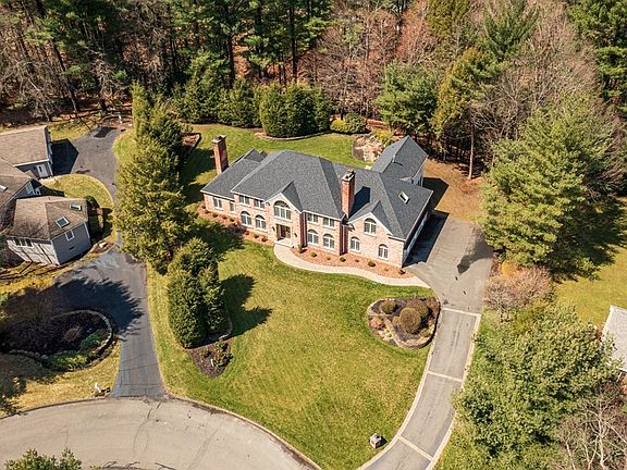 Spectacular 11 room, 4 bdrm, 4 bath, 4,874 SF Colonial in private setting on cul-de-sac is now available. Fabulous open floor plan is perfect for entertaining! Grand size foyer opens to living room, dining room & upper level balcony hallway. Expansive living space features chef's granite kitchen/dining area, breakfast bar counter w/seating, 5 burner cooktop, gas grill, double ovens & more adjoins the dramatic family room w/fplc & 2 sitting areas. 1st floor office w/separate entrance can double as a bedroom w/ full bath & laundry near by. Upstairs is a huge primary bedroom suite boasting fireplace, skylight, ensuite bath w/whirlpool tub, shower, double vanity, make-up area & a generous exercise room or study with private balcony, 3 more bedrooms and hallway tub/shower bath. Lower level has add'l 1600+SF for play rooms, wet bar & more. Private yard features a patio with outdoor kitchen, refrigerator, storage cabinet, separate fire pit w/sitting area, water fall & 3-season porch.