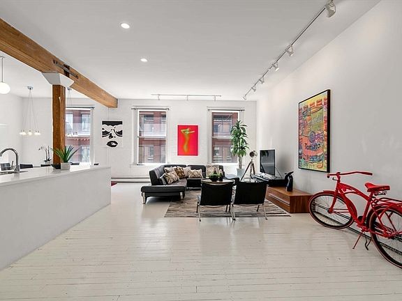 Located in the heart of the Leather District, this expansive PH 3 bed / 3 bath floor-through SoHo style loft is illuminated by southern light and offers nearly 2,600 square feet of flexible living space. The unique features include exposed beams, hardwood floors, and ceiling height spanning over 30’ high. The open-concept kitchen is appointed with a large island, Scandinavian-style cabinets, white stone countertops, sleek appliances, and 3 hidden pantries for additional storage and laundry. The chef's kitchen flows seamlessly into the living and dining rooms, making it the perfect entertaining space. The primary bedroom has an en suite bathroom with a shower, a soaking tub, and a walk-in closet. This artistic style loft maintains its original character with convenient modern upgrades. Additional amenities include central AC, in-unit washer/dryer, sky lights, and multiple office spaces. The unit enjoys a private roof deck with views and unbeatable easy access to South Station.