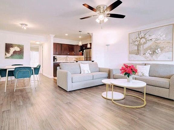 Breakfast islandGranite countersBright open-concept retreatFully updated modern bathroomChef-worthy kitchenEnclosed patioStainless steel appliances