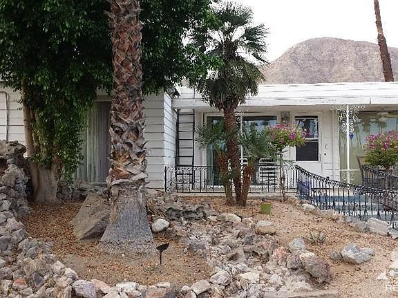 Here is a rare opportunity to own this Unique Home in Bing Crosby's Blue Skies Village. Set back on a larger lot, this home is the place to enjoy the fabulous Views of the Pitch & Putt Golf Course and Pond's Fountain with gorgeous Night Lights.Open floor plan for entertaining, 9' ceilings throughout. Large MBR in Main House and a Second Bedroom in the detached Casita that faces a secluded back yard with fabulous Mountain views. Next to the Casita, there's separate Laundry Room and a large Storage Shed. Within the past three years, the home has upgrades to the Kitchen Appliances, all Flooring, reconfiguring MBR, Water Heater, and the new Concrete Driveway. HOA ($250./mo)Incl. Water,Cable T.V and Trash twice weekly. This a great home in a very charming historical Park. What more can we say? Come and see for yourself.All information is Deemed Reliable, but not Guaranteed. Buyer to Verify.
