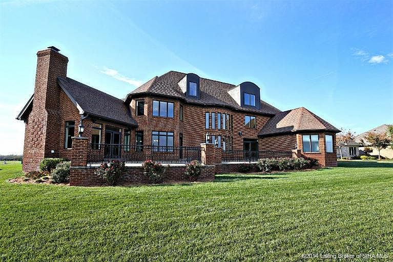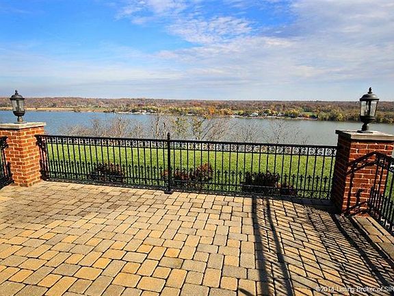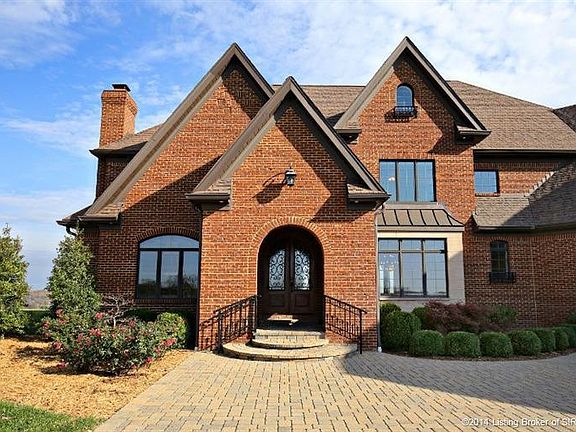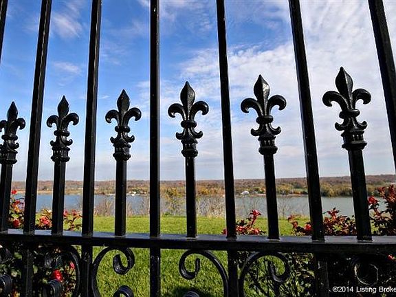 This Luxurious 5 bedroom home located in Quarry Bluff Estates is a reflection of high quality architecture paired with the best views available in Kentuckiana. Your views will consist of sail boats on the horizon & the horse farms of Prospect. Although this home is only a few minutes from Louisville, the tranquility will make it feel worlds away. From the moment you approach this executive home, you will notice the craftsmanship and quality in every detail including the circular paver driveway, copper overhang, wrought iron window grills to the solid double iron carved doors. Once inside you will find a floorplan designed around river views enhanced with numerous fireplaces, travertine floors, barrel ceilings, built ins, handscraped hardwoods, and much more. There is no better place to entertain than on the outdoor paver terrace with custom fleur-de-lis wrought iron rails. There are too many features and highlights to this once in a lifetime property to describe.