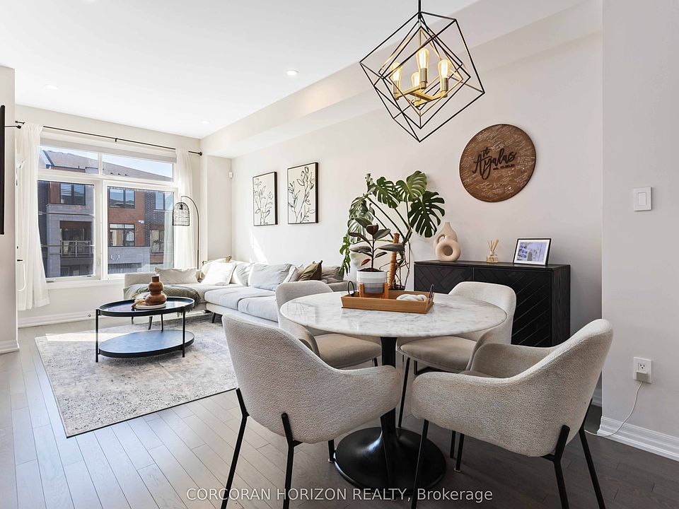 Modern Luxury in Woodland Hill-- Welcome to 134 Bravo Lane. This recently built 3-bedroom townhome blends style, comfort, and convenience with luxury finishes throughout. Enjoy bright open living with smooth ceilings, pot lights, hardwood floors, upgraded countertops, vanities, and tiles. The primary bedroom is a retreat with a custom walk-in closet, built-in night stand lighting, and a spa-like ensuite bathroom with heated floors. The versatile 3rd bedroom includes a custom Murphy bed with built-in storage -- ideal as a guest room, office, or playroom. A main floor office offers privacy for those who work from home. Custom closets, a sleek glass-railed entryway, and a smart laundry nook add function and style. Outside, interlocking adds curb appeal and additional parking. **Did we mention location!? Steps to top rated schools, parks, trails, shopping, and the GO Station. Minutes to both HWYs 400 and 404**
