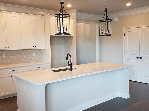 • Kitchen Features: Breakfast Bar, Pantry, View to Family Room, Kitchen Island, Solid Surface Counters, Cabinets White