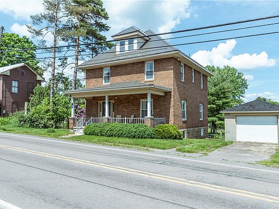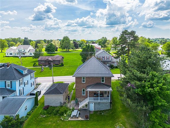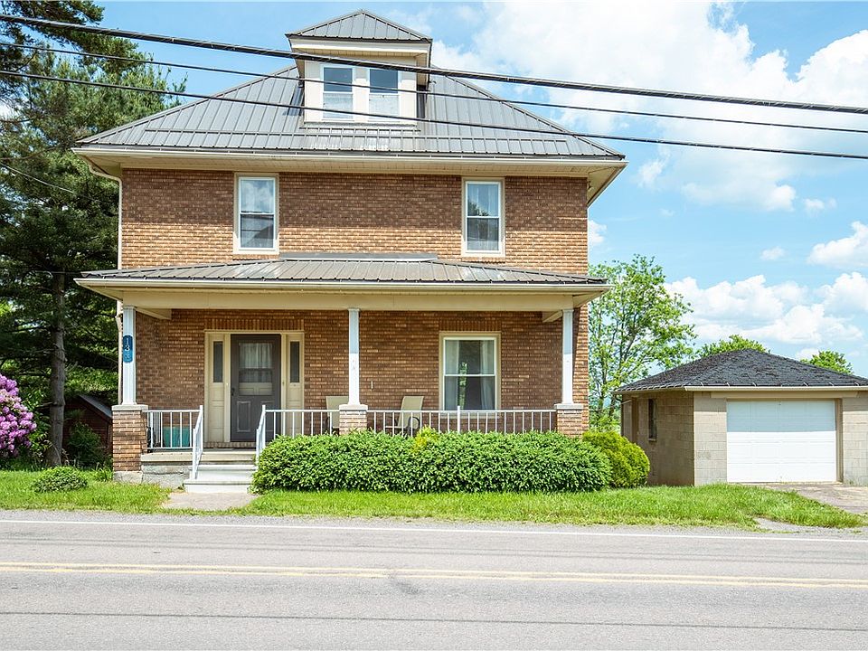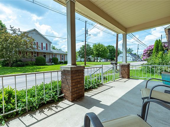 Charming all brick house with a spacious back yard with countryside views. Large foyer offers a variety of ways to use it. Formal dining room with hardwood floors, kitchen with corian counter tops, island, built in cupboards original to the house. Upstairs has four bedrooms and full hall bath. Large attic space. Replacement windows and updated electric. Front and back covered porches. Located close to a restuarant, ice cream shop and convenience store. One car detached garage.
