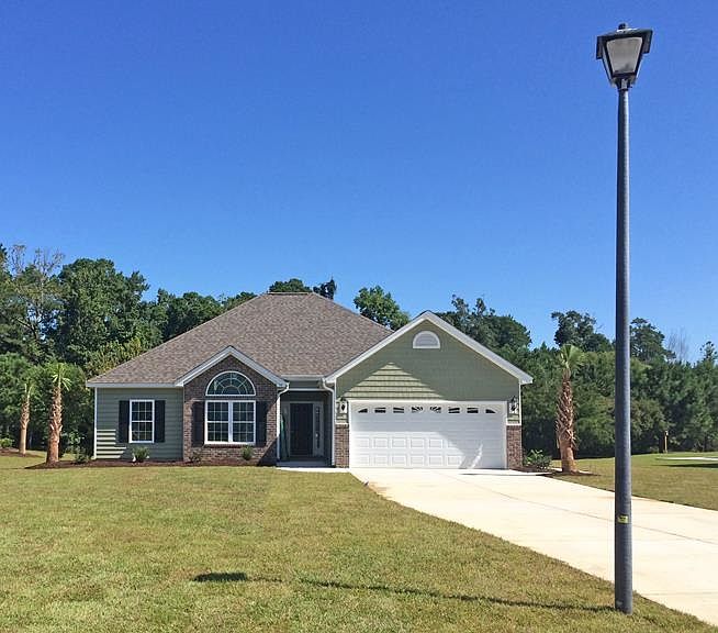 This is the Ocean Drive plan. One of 18 NEW HOMES built in the new Bridgeway Park single-family homes subdivision now under construction in the Plantation Harbour community in Little River just off of Sea Mountain Hwy west of the Waterway. Other affordable homes are available in the new Bridgeway Park Subdivision. Community features include over sized home sites, premium home site locations, and landscaped street island with fountain and walkway. Standard house features include brick accents, 9-foot ceilings, tile flooring in kitchen, baths and laundry area, hardwood flooring in living room, stainless steel appliance finishes, granite counter tops, upgraded cabinets with self-close and slam-proof drawers and doors, full wood-trimmed window casings, sodded and landscaped yards with irrigation system included (some seeding in rear yards of larger lots), garage door openers--even your mailbox is included with every home purchase!!