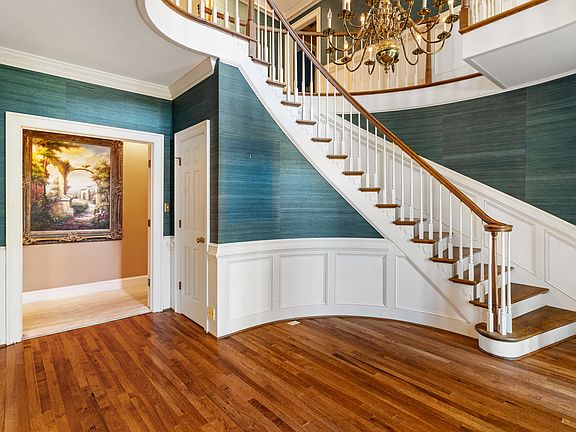 The formal foyer is breathtaking with its polished hardwoods, soaring ceiling and curved staircase leading to an open balcony and landing. The expansive 450+ sq. ft. Owner's Suite features a gas fireplace, His & Her Full Bathrooms, each with its own walk-in closet, and an attached sunroom with gorgeous pool views. The home office/library has a distinguished, historic feel with its rich judges paneling, parquet floor and custom-built maple bookshelves and cabinetry.