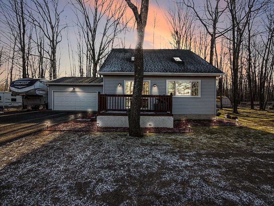 The 1st floor main bedroom overlooks the wooded backyard. Upstairs, 2 large bedrooms & bathroom ensure comfortable accommodations for all. Near activities, snowmobile trails & walk-out water access. Home can be sold furnished.