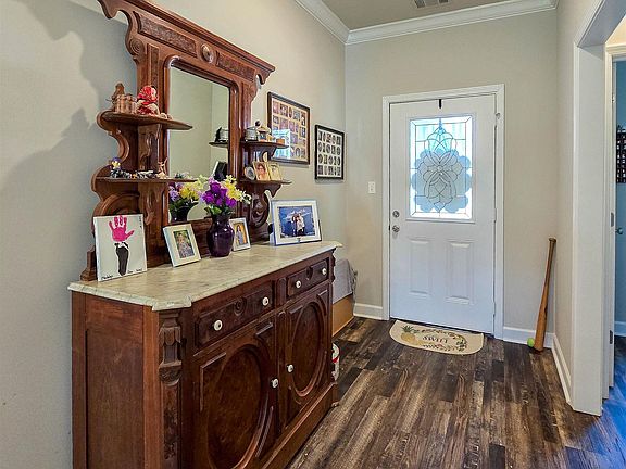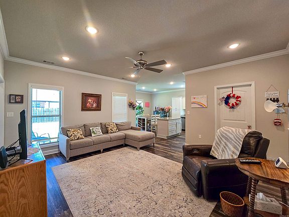 Brookland Beauty! Discover this charming one-level, 3-bed, 2-bath home in the Brookland School District! The seller, who purchased this home as new construction in 2020, has kept it spiffy with LVP flooring throughout & crown molding. A spacious foyer leads to a bright great room, perfect for your sectional & recliners. The kitchen features stunning granite countertops & a versatile, movable island with a breakfast bar & ample storage. A tall pantry, gas range, micro-hood, & dishwasher are included, & the fabulous refrigerator is negotiable. The dining area is filled with natural light from a large window. This home offers a desirable split-bedroom plan. The private primary suite, located off the great room, boasts generous space, large windows, an en-suite bath with a double vanity, & a roomy walk-in closet. Two additional good-sized bedrooms are off the foyer; one has a double-door closet, & the other has a walk-in closet. The deep laundry room provides plenty of space for a freezer, crafts, or a sewing table – endless possibilities! Outside, enjoy a covered patio & a private, fenced backyard, large enough for a pool, garden, or putting green.