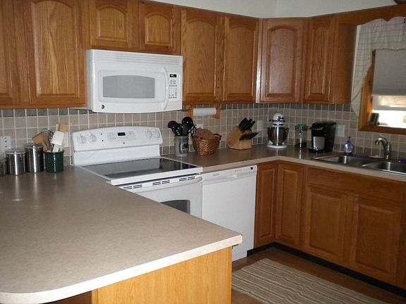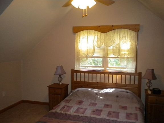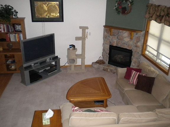 Way BIGGER than it looks! Spacious & open floor plan! Living room w/ vaulted ceiling & stone front fireplace. Private master bedroom suite! Finished bsmt w/ second fireplace, large wet bar, beautiful slate floor, outside access & laundry room! Laundry room on 1st floor too! VERY level lot w/ multiple decks & gazebo. Perfect for entertaining this summer! Must see!