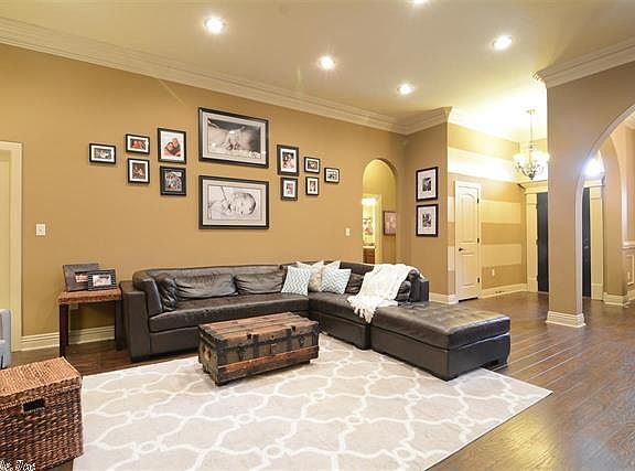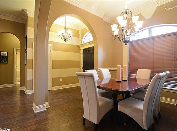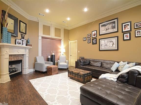 Luxury 4 bed 2 bath in the Country Club of Arkansas Quarters. This home features high-end finishes with triple crown molding, spacious chef's kitchen including a 5-burner gas stove, breakfast bar and 2nd dining area. The living area features a double-sided gas fireplace. Just off the master bedroom relax in the large soaking tub featuring the 2nd double sided gas fireplace. Abundant closet space throughout! Extra safety feature includes a steel tornado shelter installed in the garage. Don't miss this one!