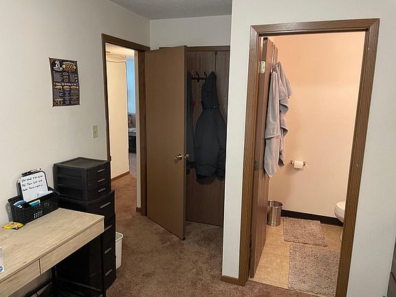 -2 minute walk from campus -The apartment comes unfurnished and is mostly carpet with vinyl tile in the kitchen -Fully equipped kitchen -Bike rack outside -Includes high speed internet Renter only pays for electric utility, all others included -2 parking spaces provided -No smoking and no pets allowed