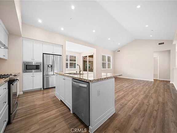 This beautiful Avalon Plan 2 unit, built by Irvine Pacific, features 2 bedrooms and 2 bathrooms and is located in the spectacular Eastwood Village master-planned community! It boasts abundant natural light, high vaulted ceilings, and an open floor plan. The open-concept kitchen overlooks the living room and is equipped with stainless steel appliances. The spacious primary bedroom and second bedroom are situated on opposite sides of the home for added privacy. Bright LED lighting throughout, and both bedrooms feature recessed lighting and walk-in closets. The second floor is finished with laminate flooring and new custom paint. Wood shutters add to the charm, while the washer and dryer are conveniently located in an individual closet on the second floor. The cozy balcony/patio is perfect for enjoying your morning coffee or an afternoon read. The 2-car attached garage provides direct access. You must see this beauty in person to fully appreciate its cozy and comfortable flow. The Eastwood community offers a variety of amenities, including a clubhouse, sports courts, resort-style pools, BBQ area, pet-friendly park, and an elementary school within walking distance. It is conveniently located near shopping, dining, and major freeways. The area is served by award-winning schools: Eastwood Elementary, Sierra Vista Middle School, and Northwood High School.