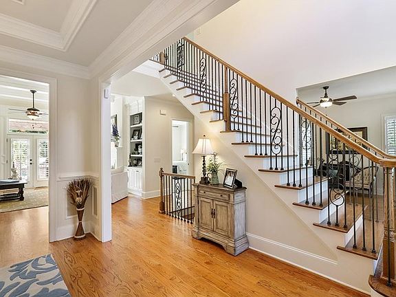 - Interior: 10 ft+ Ceil Main, 2-Story Foyer, Double Vnty Other, Trey Ceilings, Wall/Wall Carpet, Bookcases, 9 ft+ Ceil Upper, Exposed Beams