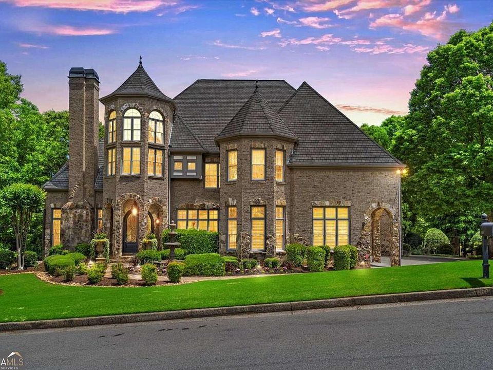 Welcome to another realm of luxury living at 'Fortress on the Green" nestled within the prestigious Summit at Bridge Mill community. Behold a majestic custom castle home, a true testament to architectural excellence and opulent living. Featured in "Atlanta Home Improvement MagazineC, this work of art boasts five grand bedrooms, a chefs kitchen with 2 sinks and 2 dishwashers, hand painted custom wall finishes, a cozy movie theater with a true concession stand, on-site gym, a full custom bar that features beer taps, ice maker, a dishwasher, and a refrigerator., beautifully made wine room, and outdoor oasis!! this residence exudes an aura of sophistication and grandeur at every turn. Step inside, a grand foyer adorned with soaring ceilings and luxurious marble flooring sets the tone for the lavish lifestyle that awaits within. The expansive living spaces are a harmonious blend of classic elegance and modern convenience, floor-to-ceiling windows bathe the interiors in natural light. The gourmet kitchen is a culinary masterpiece, and a spacious island, perfect for entertaining guests. Retreat to the sumptuous owner's suite, where tranquility abounds with an oversized sitting area, fireplace, and spa-like bath. The spa-inspired ensuite bath offers a sanctuary for relaxation, complete with a soaking tub, walk-in shower, and dual vanities adorned with marble accents and his and hers closets. Indulge in outdoor living at its finest in the sprawling backyard oasis, Built by and featured on the show "Ground Breakers", a resort-style pool beckons on warm summer days overlooking the 13th hole of the award-winning BridgeMill Golf Course. Entertain guests al fresco on the expansive patio and outdoor kitchen, offering breathtaking views of manicured fairways and pristine greens. This property has unparalleled amenities and exquisite craftsmanship at every turn, this custom castle home epitomizes luxury living in an exclusive golf course community. Just minutes from Lake Allatoona, convenient to nearby shopping and dining and minutes from 575. Discover the pinnacle of refined living and make this extraordinary residence yours!