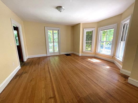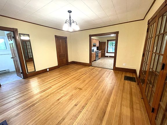 This is one of the original "Railroad Houses" built in 1845 for the executives of the railroad company. It has the original detailed wood trim created by a locally famous woodworker at the time, as well as the original wood floors. This is an enormous house, with two large living rooms up front (each with a bay window), a large dining room with glass doors, a very large kitchen and adjacent butler's pantry. The first floor also has a mudroom with front loading laundry, full bathroom, and 4 sets of French doors. The second floor has 5 bedrooms and another full bathroom. On the outside there is an enormous wrap around porch, a large yard, off street parking, and a garage. The house was fully restored in 2019. There is an apartment in back rented to a retired Norwich professor. A minimum credit score of 650, monthly income of at least $9800, security deposit, last month's rent, and a one year lease is required. Owner pays for water, sewer, trash, recycling, mowing, and plowing. Tenant pays for heat and electricity. No smoking. One year lease is required, credit check, minimum credit score of 650, security deposit, and last month's rent