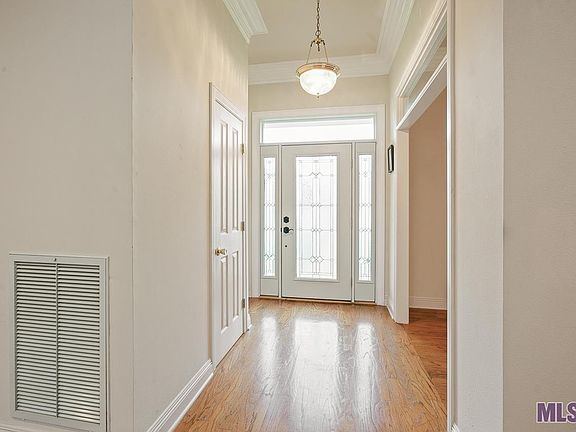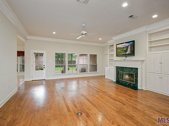 Off of HIGHLAND ROAD between I-10 & Pecue, near restaurants, shopping & easy access to I-10 there is a lovely 3-way split floor plan, updated home situated on quiet cul-de-sac street in small subdivision. You will be impressed as you step through the front door into the large FOYER, LIVING ROOM & DINING ROOM with gleaming wood floors, stacked crown molding, a beautiful mantel that surrounds a fireplace flanked by bookcases. A wall of windows looks out to the back patios & backyard. Fabulous KITCHEN/BREAKFAST AREA/KEEPING ROOM w/ 2nd fireplace where friends & family can gather. Ceramic tile floors, slab granite counters, corner sink, pendant lights over the island breakfast bar & walk in pantry w/ custom spice racks. MASTER EN SUITE is spacious & a master bath that includes a large closet, his & her vanities w/ knee space, separate shower & jetted tub. BEDROOMS 2 & 3 connect through a Jack & Jill bath! This split floor plan has a 4th BEDROOM & 3rd bath off the keeping room which is great for guests, older child or a home office. All bedrooms have walk in closets & crown molding. Large LAUNDRY w/ overhead cabinets, wall mounted ironing board and shelving. OUTSIDE you'll find a remote control iron driveway gate, 2 car carport w/ an attached single car garage/storage/workshop w/ new large pegboard, a beautiful fully fenced backyard. There is also a large patio as well as a shady covered patio that are great areas for entertaining! EXTRAS: roof-12 yr, AC inside coils, outside compressors & 1 gas heater- 8 years, 40 gallon water heater-10 months, stacked crown molding, transoms over doors, NO CARPET, gleaming wood floors, new windows in the formal dining rm, composit granite in all baths, new gutters w/ leaf filters, termite contract, X flood zone. There is also a side guest entrance outside of the fencing.