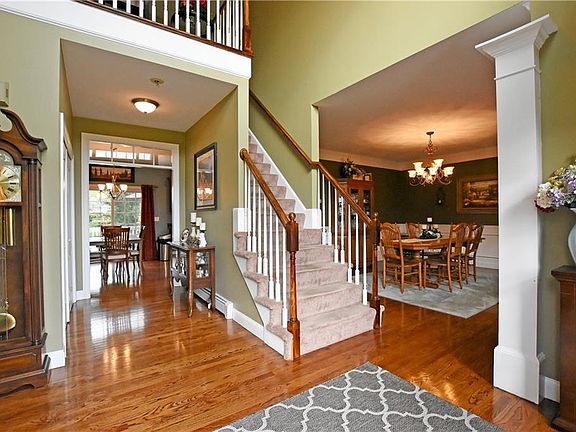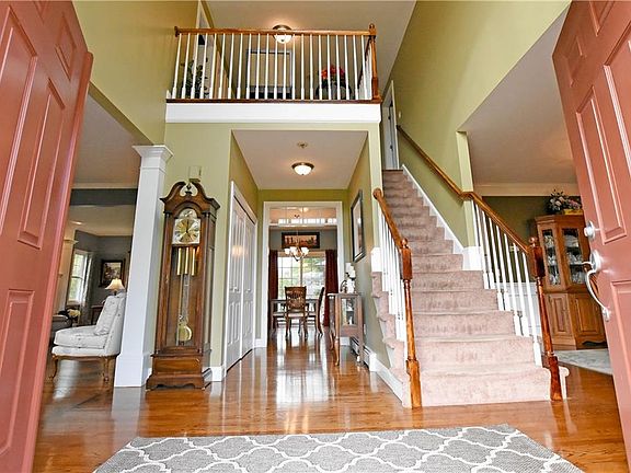 Outstanding Colonial in desirable Saddlebrook Estates. This Meridian Custom Home features 3 beds, 2 1/2 baths, open floor plan, spacious living & dining rooms, family room w/fireplace, granite & stainless kitchen w/ island and large dining area, master w/ walk-in closet and master bath w/ double vanity, jetted tub & separate shower, laundry on 1st, Walk out basement just waiting to be finished for that extra space. Step onto deck and overlook the lovely 1.57 acre lot w/ stone walls, maintained lawn & sprinklers, 2 car garage with bonus storage area above, and plenty of parking with the expansive driveway. Town water, gas heat. Don't miss this one!